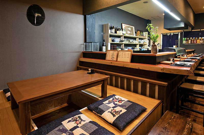 店内は26席。小料理店のようなアットホームでカジュアルな雰囲気が特徴です。ゆったりしたカウンタ―席はお一人様飲みに最適。板張り座敷席は、最大16名様収容可能で、通常はロールカーテンで仕切り、4名・8名の半個室として解放しております。会社の部署単位での忘新年会や歓送迎会、または普段の会食などに、ぜひご活用ください。